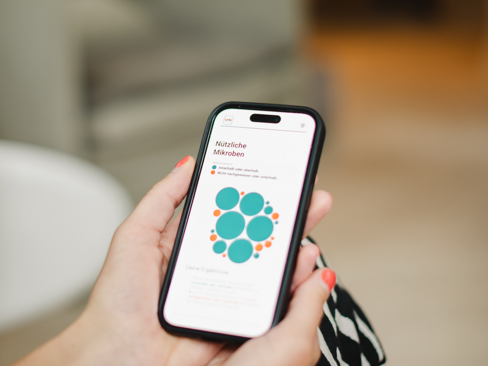 Mit unserer App erhältst du einen einfachen Überblick über deine Mikrobiom-Ergebnisse. Hier findest du detaillierte Erklärungen zu den Ergebnissen sowie Empfehlungen, wie du dein Mikrobiom optimieren kannst. Sieh dir ein Beispiel hier an.